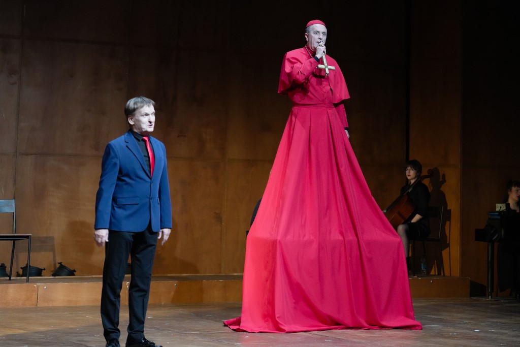 Tarik Filipović utjelovio je u predstavi „Smrt na dopustu“ kardinala, veleposlanika i glavnog direktora televizije.